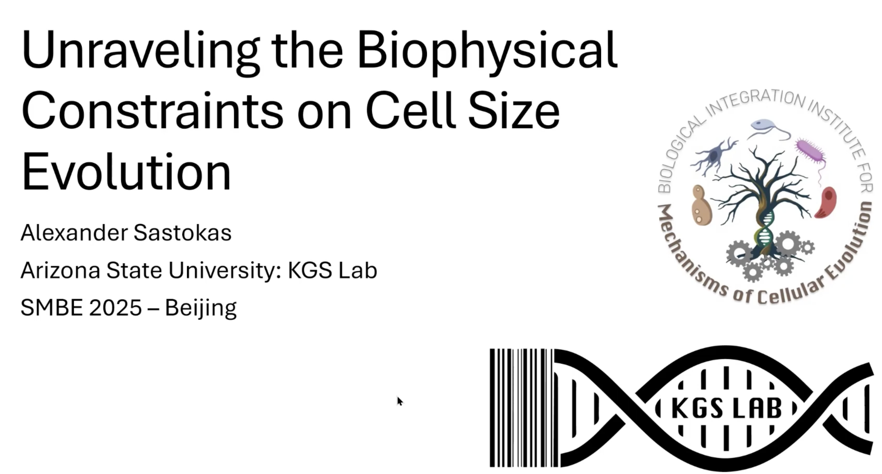 Alex won an undergraduate travel award and gave a talk about his large size selection experiment at SMBE in Beijing China.